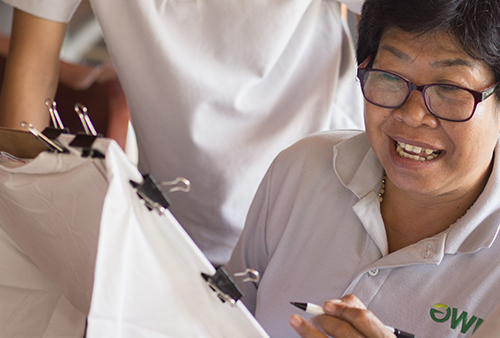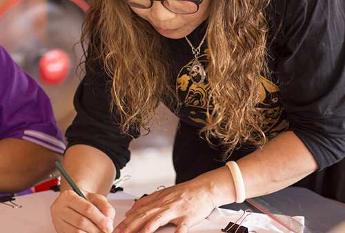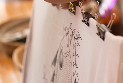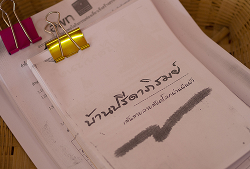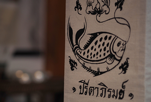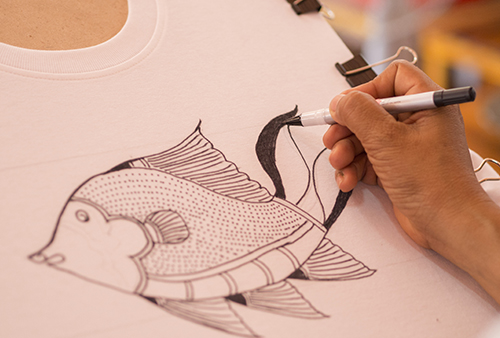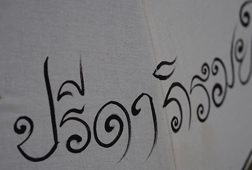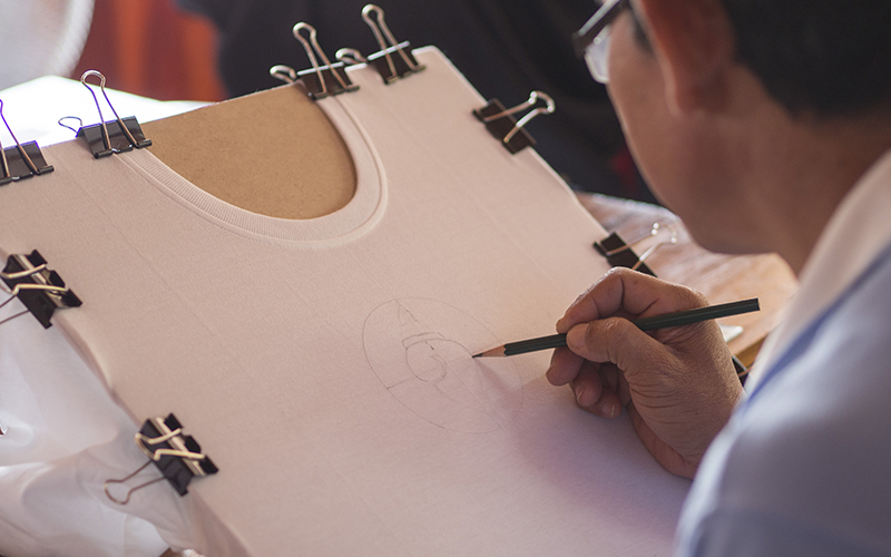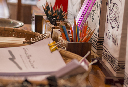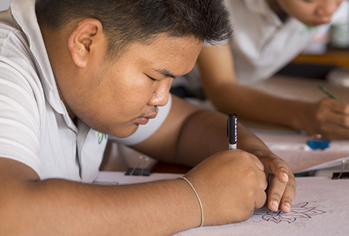 500 บาท/คน สำหรับการเขียนลายสังคโลกบนผืนผ้า