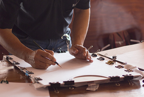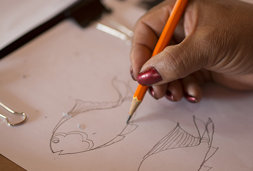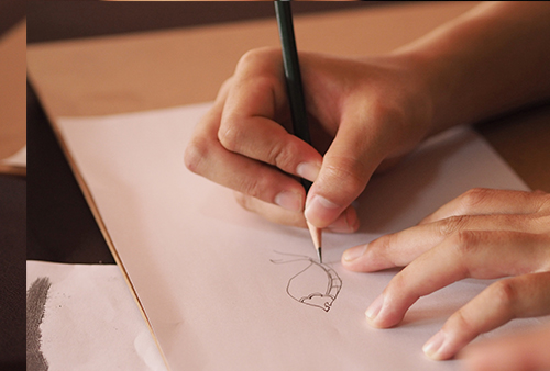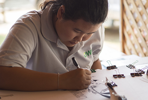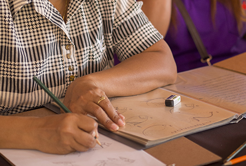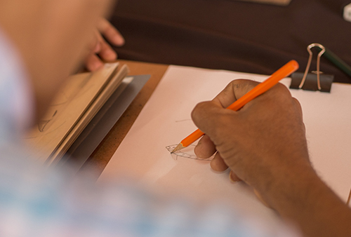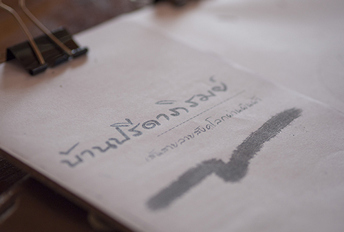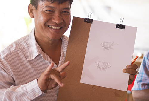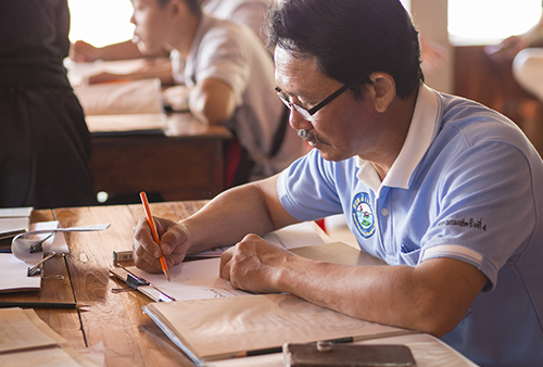 - นักท่องเที่ยวเลือกวัสดุ แล้วลงมือวาดลายเส้นสังคโลก