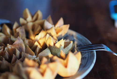 ระหว่างทำกิจกรรมนั้น นักท่องเที่ยวจะได้ลิ้มรสเครื่องดื่มสมุนไพรพร้อมความอร่อยของขนมหวานประจำท้องถิ่น เช่น สังขยาขี้ควาย (สังขยาชาวนา) ขนมแดกงา ฯลฯ จากฝีมือคนในชุมชน เพื่อส่งต่อรายได้คืนกลับไปยังชุมชนเช่นกัน