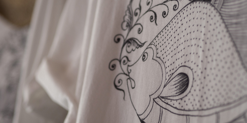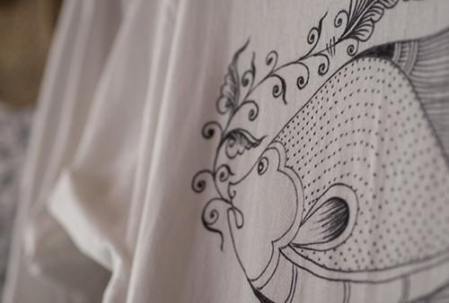 ลายเครื่องปั้นดินเผาสังคโลกบนผืนผ้า