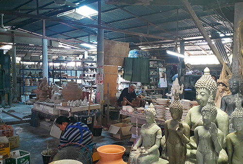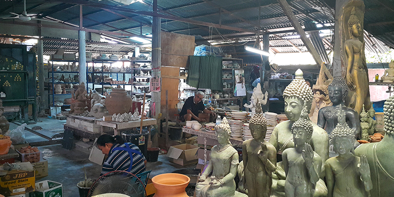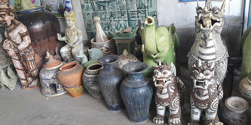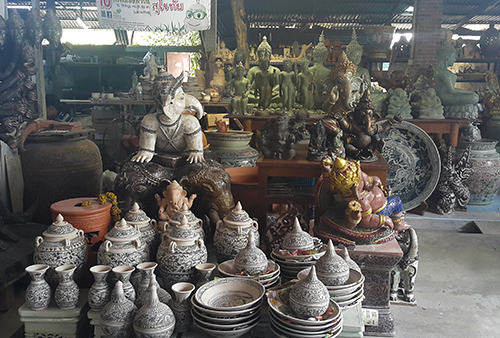 ที่นี่เต็มไปด้วยสินค้าสังคโลกที่พร้อมจำหน่ายให้กับนักท่องเที่ยวที่ต้องการจะซื้อสังคโลกเป็นของฝาก นำไปใช้หรือนำไปประดับบ้าน