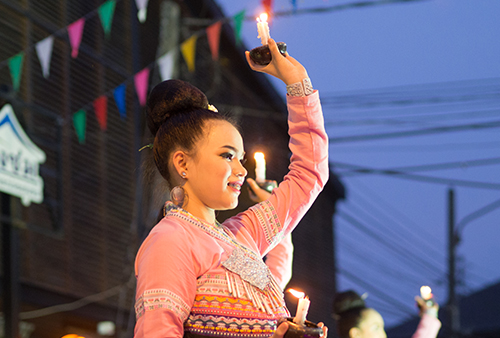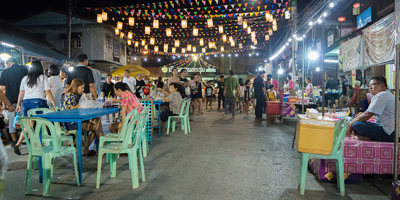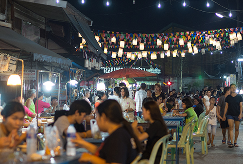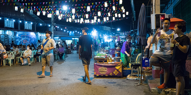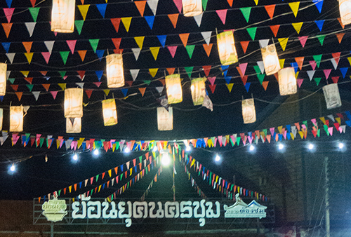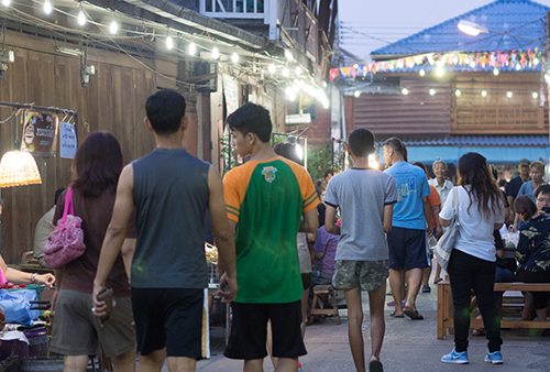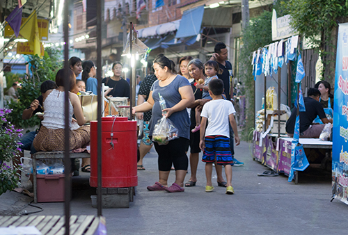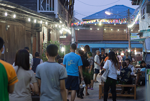 งานจัดภายในย่านชุมชนนครชุม มีซุ้มประตูทางเข้าตลาดย้อนยุคนครชุม