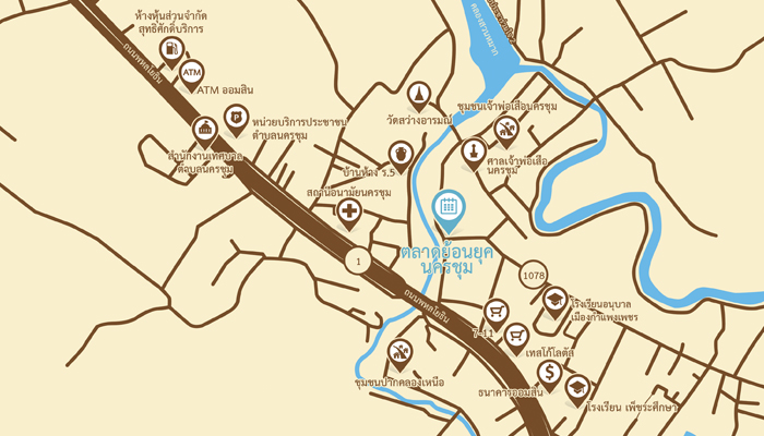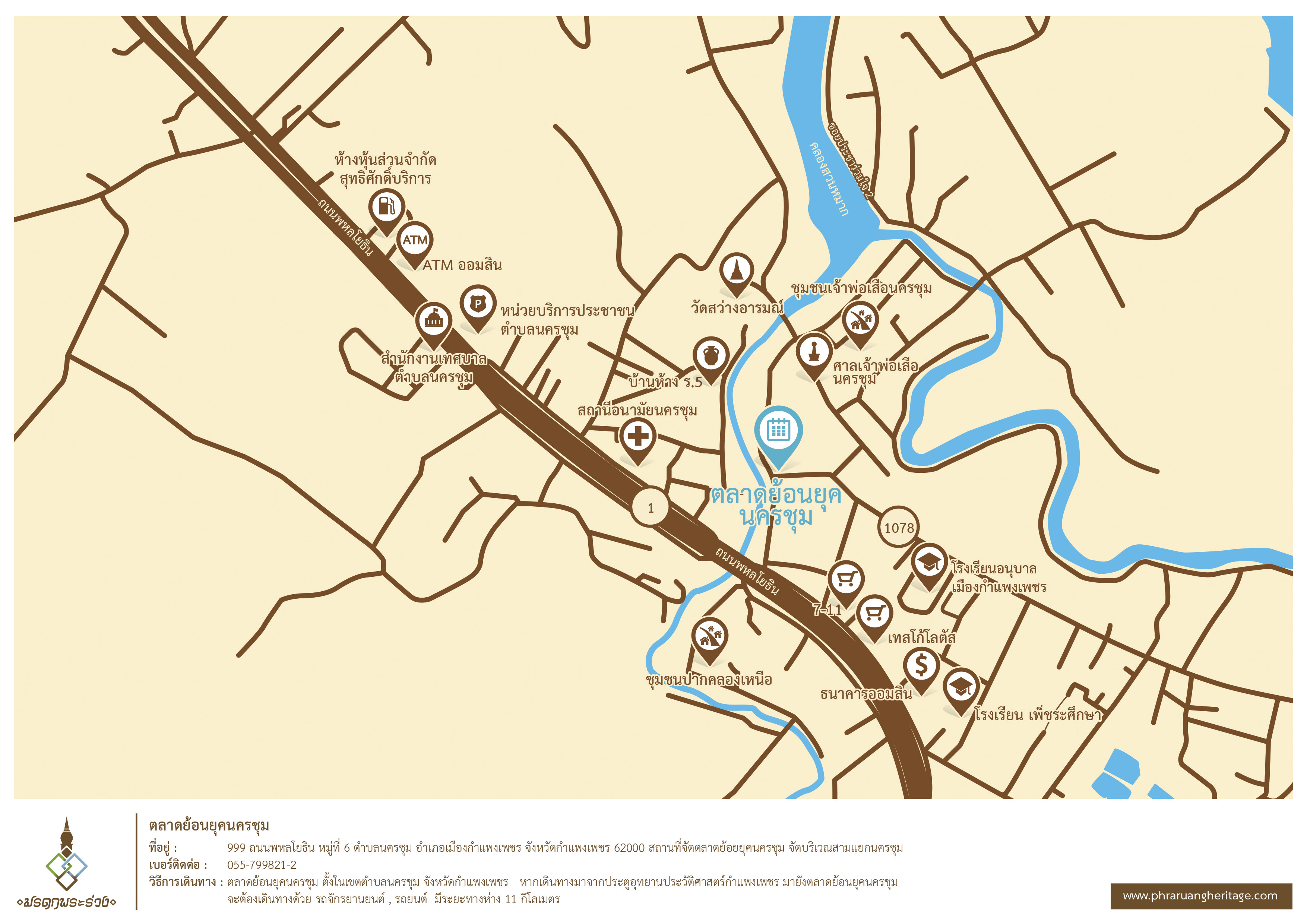 พิกัด : 16.4831829, 99.4939199 (สถานที่จัดตลาดย้อยยุคนครชุม)