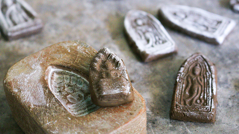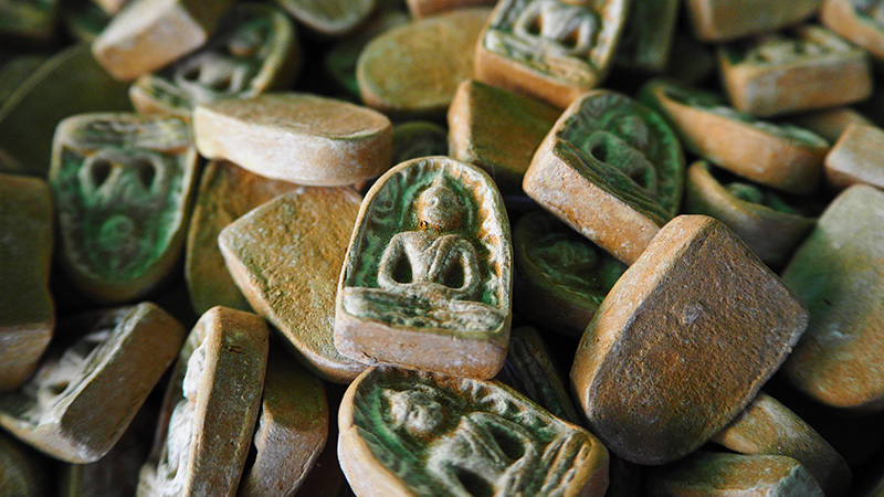 แต่พระพิมพ์สำหรับคนในอดีต คือเครื่องสืบต่ออายุพระพุทธศาสนา ไม่นิยมนำมาติดตัว แต่จะบรรจุไว้ในกรุของเจดีย์ วิหาร ฐานพระพุทธรูปขนาดใหญ่ ตามความเชื่อที่ว่าเมื่อพุทธศักราช 5000 พระพุทธศาสนาจะถึงกาลเสื่อมสลาย จำเป็นต้องมีวัตถุเตือนใจให้คนในยุคนั้นรำลึกถึงพระพุทธคุณ รวมถึงสร้างพระพิมพ์ขึ้นเพื่อเป็นการสั่งสมบุญบารมี สะเดาะเคราะห์ อีกด้วย ความเชื่อและความศรัทธาเหล่านี้ ทำให้ผู้สร้างคำนึงถึงความงดงามของการออกแบบและจัดสร้างพระพิมพ์ ทำให้พุทธศิลป์แขนงนี้มีคุณค่า
