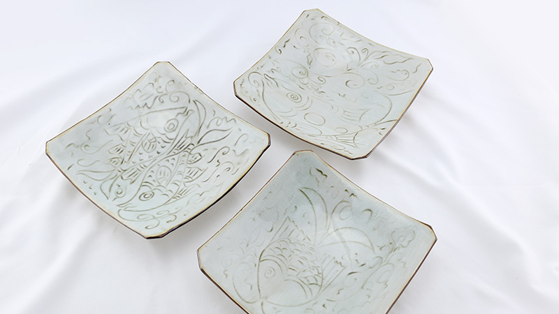 นอกจากนี้ช่างสุโขทัยยังใช้กรรมวิธีขูดขีด บาก หรือปั้นดินมาแปะบนพื้นผิวภาชนะก่อนเคลือบ เพื่อความสวยงานแปลกตา