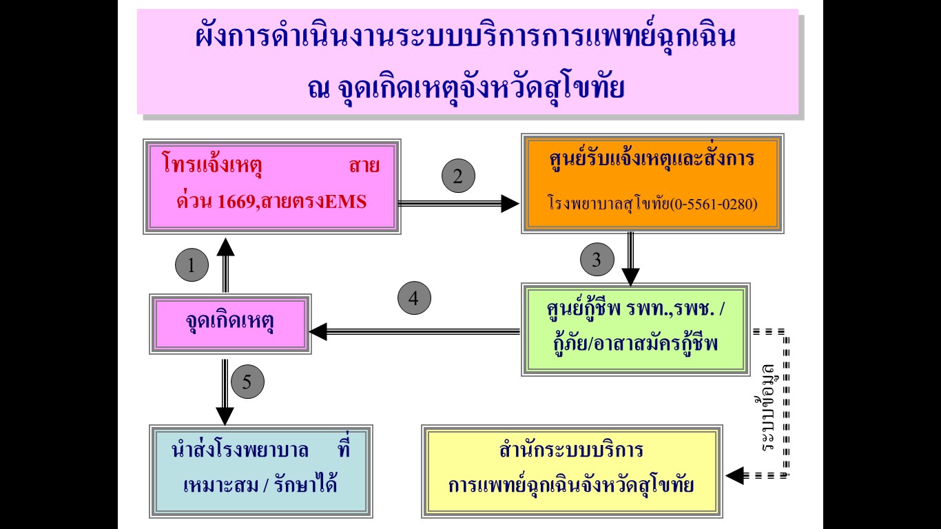 ผังการดำเนินงานระบบบริการการแพทย์ฉุกเฉิน จังหวัดสุโขทัย