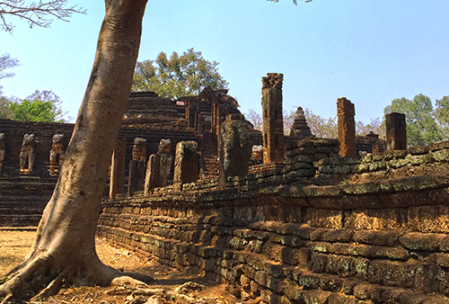 ด้านหน้ามีวิหารหลวง ถัดออกไปมีอุโบสถขนาดเล็ก สถาปัตยกรรมเหล่านี้สร้างสรรค์ขึ้นจากศิลาแลง ซึ่งคงขุดขึ้นมาจากบริเวณนั้น ดังได้พบบ่อขนาดใหญ่ด้านหน้าวิหารหลวง