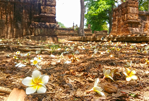 ที่ด้านหน้าฐานประทักษิณใกล้บันไดทางขึ้น พบโกลนศิลาแลงรูปสิงห์ตั้งอยู่ พระบาทสมเด็จพระจุลจอมเกล้าเจ้าอยู่หัวเคยเสด็จมาแล้วทอดพระเนตรเห็น จึงเรียกกันว่าวัดสิงห์ ด้านหลังของฐานประทักษิณมีเจดีย์ประธานของวัดนี้ ฐานเป็นรูปสี่เหลี่ยมที่ถูกยืดให้สูงและซับซ้อน มีซุ้มประดิษฐานพระพุทธรูปทั้ง 4 ด้าน ส่วนยอดคงเป็นเจดีย์ทรงระฆังแต่พังลงมาหมดแล้ว