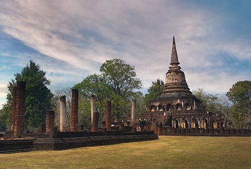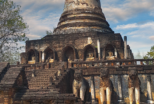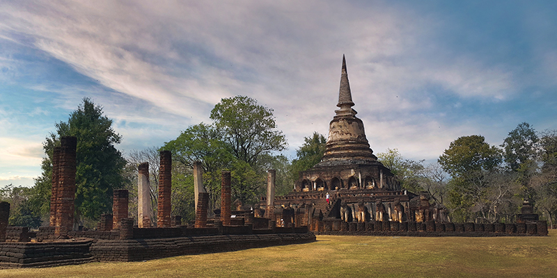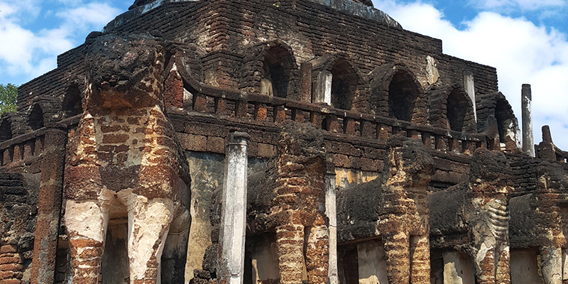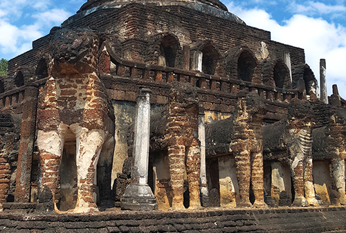 มนต์เสน่ห์ที่เป็นเอกลักษณ์ที่เห็นได้อย่างชัดเจน โบราณสถานที่มีขนาดใหญ่ตั้งสง่าอยู่เกือบกึ่งกลางเมือง "วัดช้างล้อม" หนึ่งใน Highlight ณ อุทยานประวัติศาสตร์ศรีสัชนาลัย