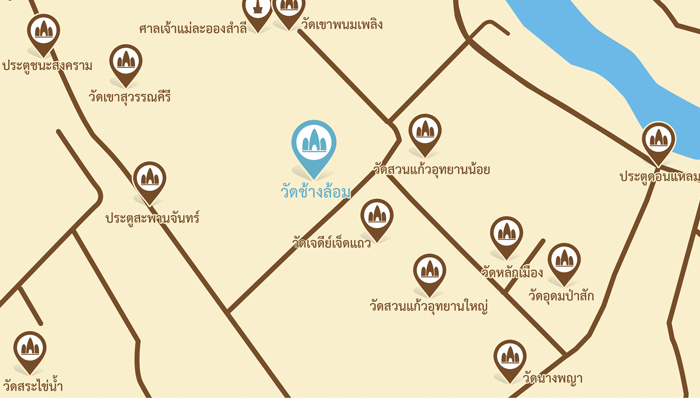 จากอุทยานประวัติศาสตร์ศรีสัชนาลัยเดินทางไป วัดช้างล้อม ซึ่งอยู่ภายในอุทยานประวัติศาสตร์ศรีสัชนาลัย โดยวัดระยะทางจากอุทยานประวัติศาสตร์ศรีสัชนาลัยได้เป็นระยะทาง 1.19 กิโลเมตร