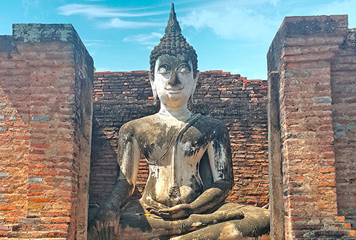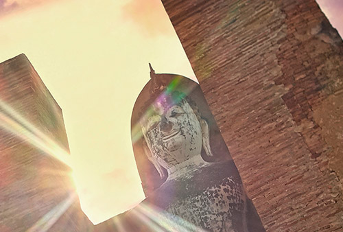 แม้บัดนี้ร่างกายของอาณาจักรสุโขทัยจะเสื่อมโทรมลงตามวันเวลา แต่ลมหายใจของสุโขทัยยังคงแจ่มชัด การได้มาเยือนวัดมหาธาตุจึงเท่ากับเราได้สัมผัสจิตวิญญาณของสุโขทัยซึ่งซึมซาบอยู่ระหว่างอิฐ หิน ปูน ทราย