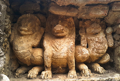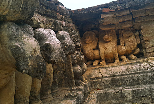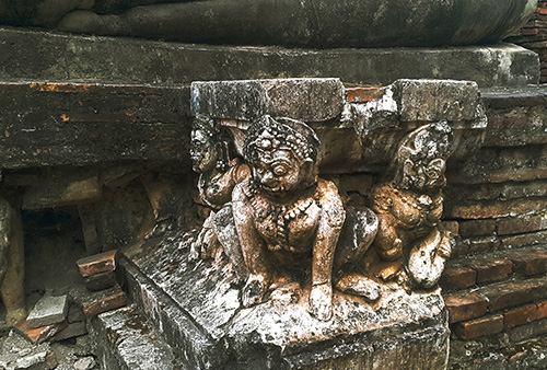 ประติมากรรมปูนปั้นที่ฐานของเจดีย์ เป็นพระสาวกในท่าอัญชลีหรือประนมมือเดินประทักษิณโดยรอบฐานเจดีย์ 4 ด้าน