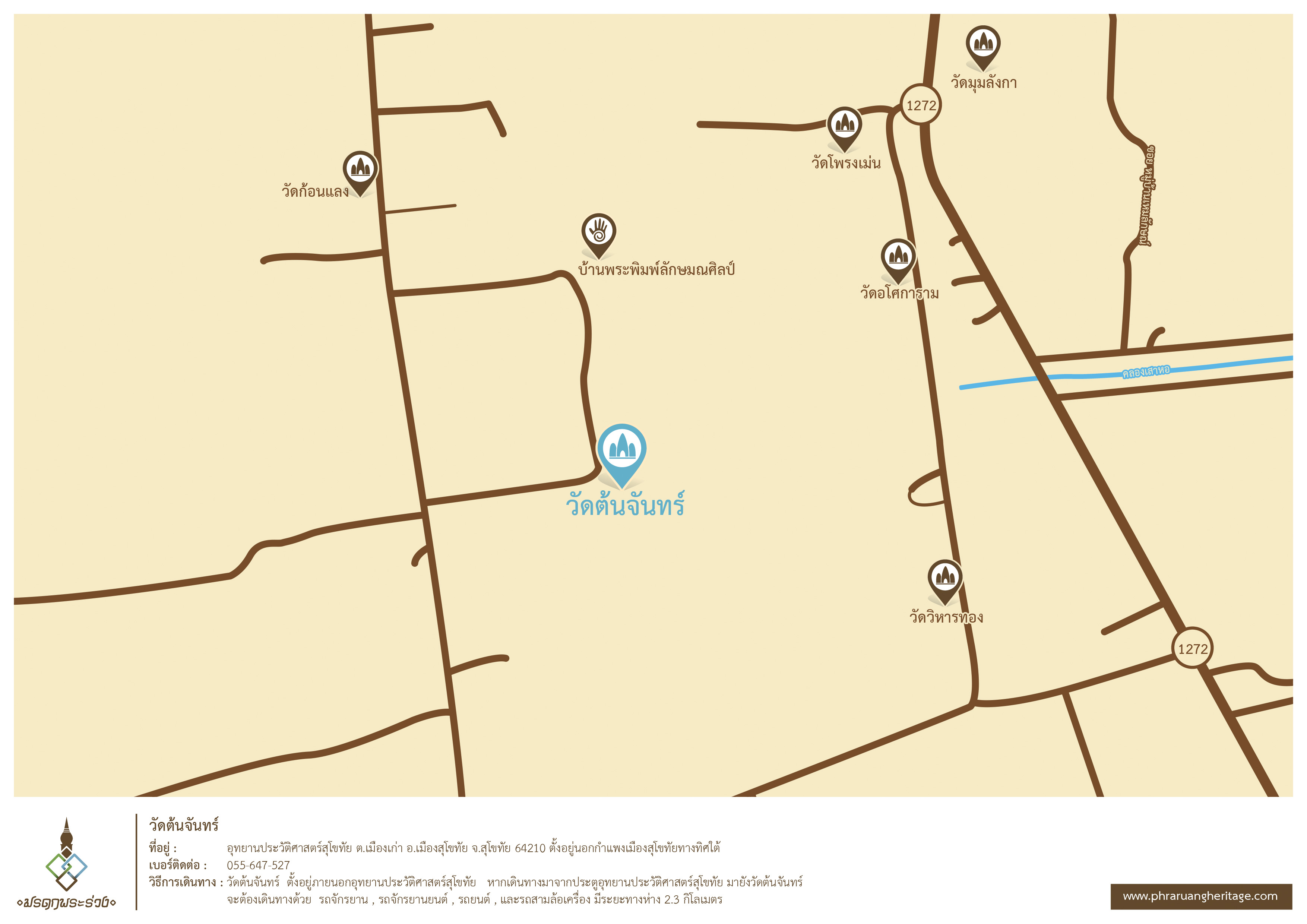 วัดต้นจันทร์ ตั้งอยู่นอกกำแพงเมืองสุโขทัยทางทิศใต้