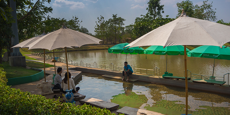 ภายในพบบ่อน้ำพุที่ผุดขึ้นมาทั้งหมด 5 จุด ความร้อนอยู่ที่ 45-60 องศา และได้รับการรับรองจากกระทรวงสาธารณสุขว่าสะอาดปลอดภัยไร้สารปนเปื้อน ภายในมีการจัดสถานที่สำหรับให้บริการอาบน้ำแร่แบบส่วนตัว โรงอาบน้ำแร่รวมแยกชาย หญิง, อ่างอาบน้ำร้อน, อ่างแช่, นวดฝ่าเท้า และนวดแผนโบราณ นอกจากนี้ยังมีที่พักรองรับนักท่องเที่ยวที่ต้องการพักแบบค้างคืนให้บริการอีกด้วย ด้านหน้าของบ่อพุร้อนมีศาลพระร่วง ซึ่งเป็นสถานที่สักการะขอพรของชาวบ้านและนักท่องเที่ยว