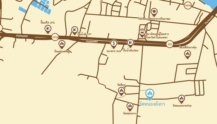 จากอุทยานประวัติศาสตร์กำแพงเพชรเดินทางไป วัดหนองลังกา ซึ่งอยู่ภายนอกอุทยานประวัติศาสตร์กำแพงเพชร โดยวัดระยะทางจากประตูทางเข้าอุทยานประวัติศาสตร์กำแพงเพชร ได้เป็นระยะทาง 5.9 กิโลเมตร