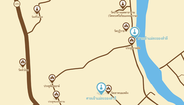 17.43421, 99.7846 ศาลเจ้าแม่ละออกสำลี ที่ตั้งอยู่หลังวัดพนมเพลิง