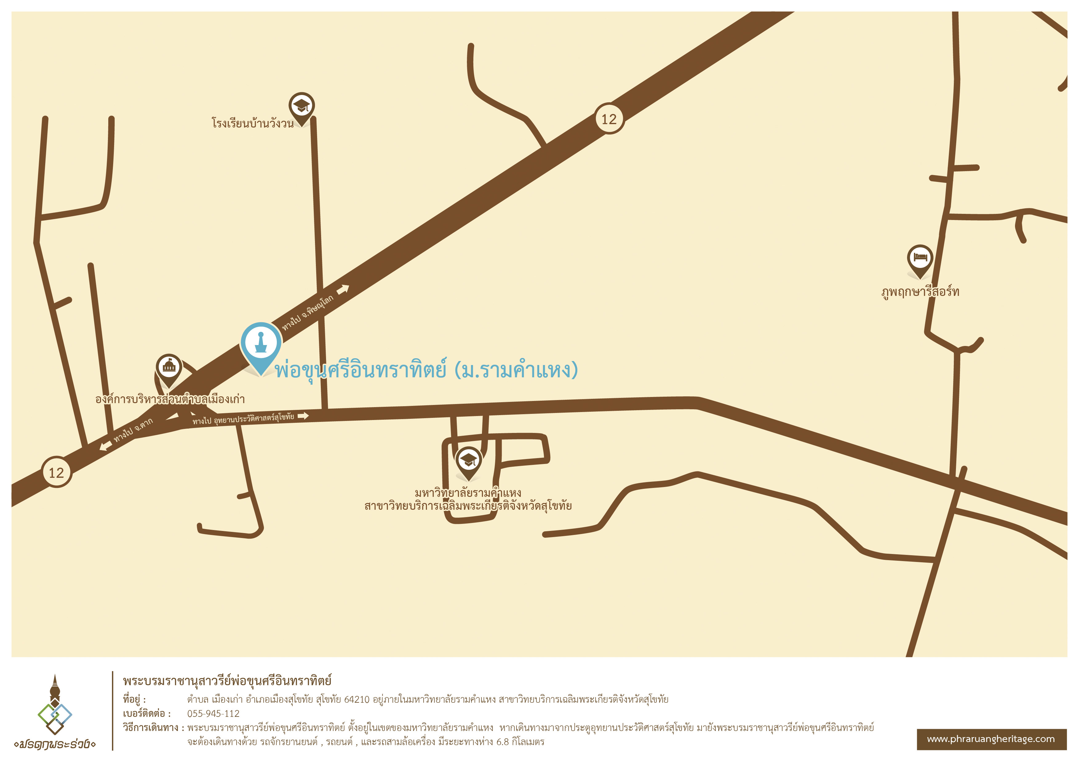 สถานที่ตั้ง : มหาวิทยาลัยรามคำแหง วิทยาเขตสุโขทัย อยู่ห่างจากอุทยานประวัติศาสตร์สุโขทัยชั้นในประมาณ 5.6 กิโลเมตร